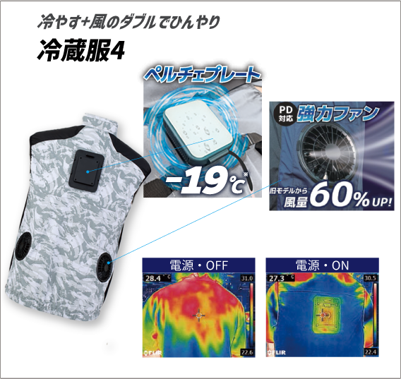 昨年も完売した冷蔵服が、風量60%UPでパワーアップ!ペルチェ素子で冷やし、服内に風を巡らせる“ひんやり×送風”のダブル冷却!