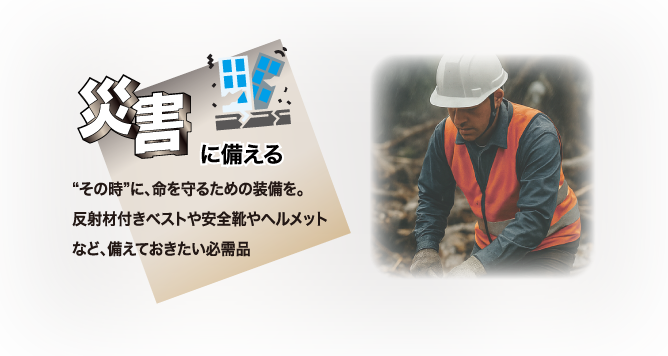 “その時”に、命を守るための装備を。反射材付きベストや安全靴やヘルメットなど、備えておきたい必需品!