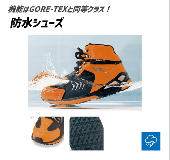 世界最高水準の防水透湿素材ディアプレックスを使用。高さ4cm防水に加え、耐滑ソールや鋼製先芯、反射材も備えた安心の防水セーフティシューズ。