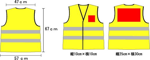 安値で効果抜群の防犯ベスト。自治会名・学校名や、校章・マー クなどが印刷可能です。冬季の活動時、防寒ブルゾンの上から 着用出来るように大きめに出来ています。