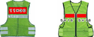 背中に自治会名・学校名などの名入れ印刷が可能な防犯ベストです。通気性の良いメッシュ生地タイプです。背中印刷部分のみポリエステル生地を使用していますので、Tシャツ等と同じ感覚のシルクプリント(ロゴ・イラストなど)が可能です。生地部分への印刷となりますので、反射テープ部分の機能を損なわず、名入れができます。